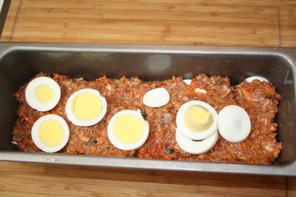- In the center of each foil piece, place about 2 cups of the ground pork mixture. (If making the large log, place about 3 cups of pork mixture).Flatten the ground pork to a rectangle shape. Place a few pieces of the hard-boiled egg slices in the center of the meat.Using the foil underneath, roll up the pork to shape into a log, with the hard-boiled egg slices in the center. Make sure logs are uniform in shape.Wrap each log with the foil. Seal the sides and the center well, so that nothing spills out during cooking time.Medium-sized logs: About 5 inches length.Large-sized logs: About 8 to 9 inches length.