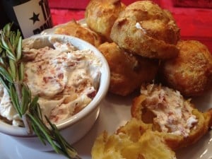 Gougeres- Cheese Puffs and Cream Cheese Spread with Filipino Chorizos