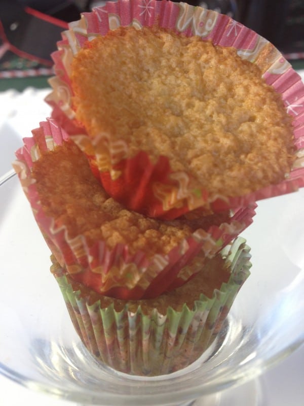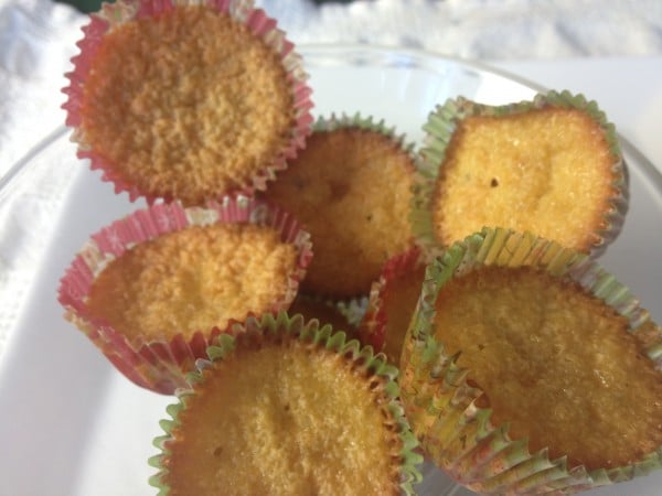 - Pour a tablespoon of the batter into tiny fluted paper cups lining small muffin tins. Batter should fill only ¾ of the cup.