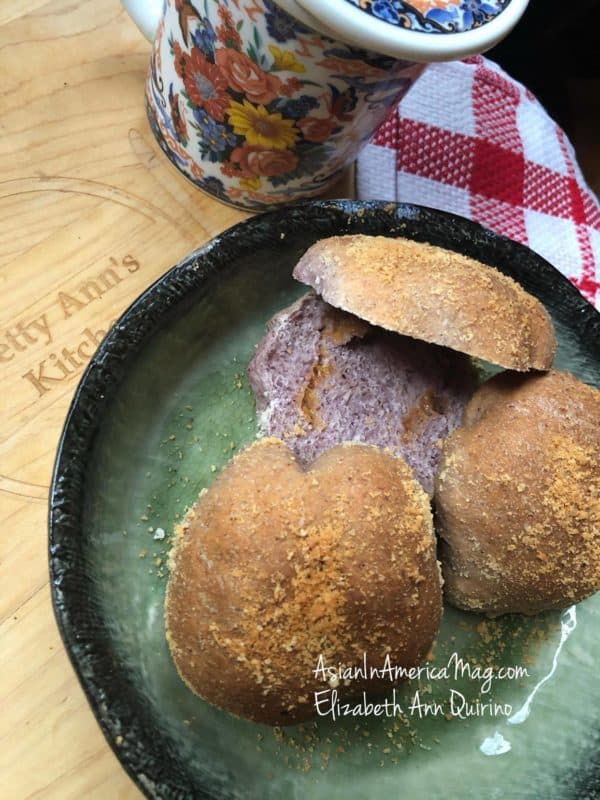 These bread buns took half a day to make, which included proofing. Kneading took my mind off the weight of the news. Once the puffy, light and airy pan de sal buns were out of the oven, nothing else mattered. We eagerly slathered the butter on the warm, light lavender bread. And all was right in the world.